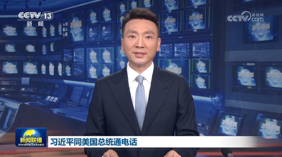 6月5日晚,國家主席習近平應約同美國總統特朗普通電話。圖為《新聞聯播》報道畫面。
