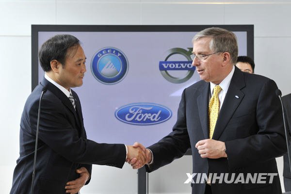 吉利集團董事長李書福和福特汽車公司首席財務官Lewis Booth在哥德堡簽署了該協議,中華人民共和國工業和信息化部部長李毅中以及瑞典副總理兼企業能源部長Maud Olofsson出席了簽署儀式。