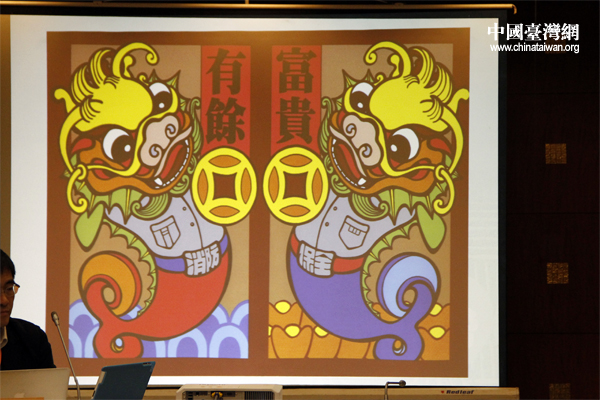 李焯然教授介紹臺灣年畫的技術創新。(中國臺灣網 張潔 攝)