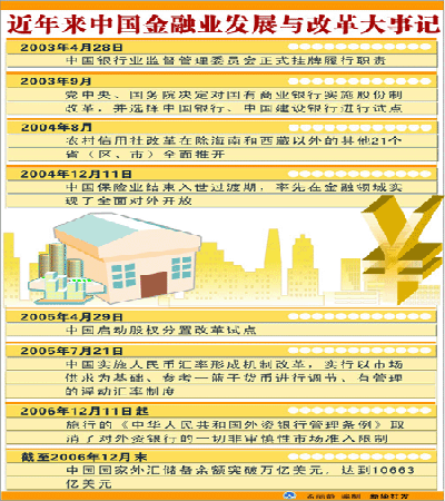 報告提出, “十一五”期間金融改革重點包括:加快推進利率市場化改革;形成更富彈性的匯率形成機制;基本完成國有商業銀行股份制改造;重構農村金融體係;引導金融業綜合經營和金融控股公司的發展;健全金融機構市場退出機制;建立存款保險制度;大力發展債券市場,擴大直接融資;推動資產證券化,鼓勵金融創新;構建多層次資本市場體係。