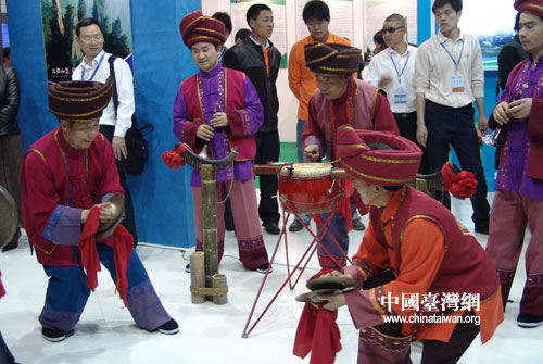 具有湖南張家界地方特色的土家族舞蹈打溜子吸引了展廳內許多人的目光
