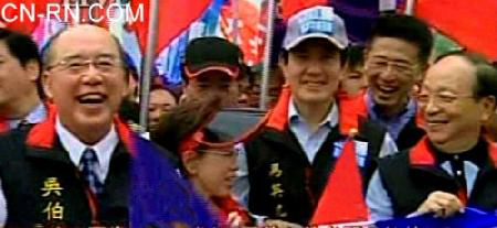 國民黨前主席馬英九、前代主席吳伯雄和黨籍“立委”蔣孝嚴等帶領遊行隊伍(圖片來源:中國臺灣網)