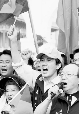 馬英九在遊行現場高呼口號