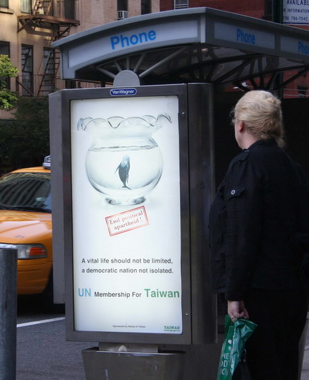 “入聯”廣告紐約街頭高高挂