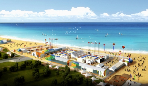 沙灘籃球位于海陽鳳翔灘C區(海陽旅遊度假區君子連理島橋頭廣場東側沙灘),佔地面積8000平方米,設置一塊主場地、兩塊副場地,作為臨時場地承擔2012年海陽亞沙會沙灘三人籃球項目男、女比賽,所有場地面朝大海,在沙灘上搭建比賽所需地板設施,使該項目的場地形象具有極強的視覺感受。