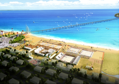 位于海陽鳳翔灘D區(海陽旅遊度假區君子連理島橋頭廣場西側沙灘),佔地面積23000m2,沙灘排球設置五塊比賽場地,兩塊練習場地,承擔2012年海陽亞沙會沙灘排球所有比賽項目。