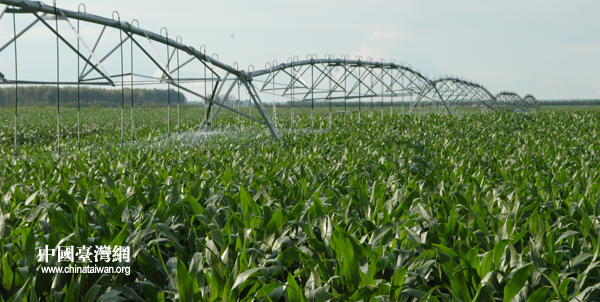 全省產糧第一鎮的肇東五里明鎮玉米噸良田里的圓心自走式噴灌機(中國臺灣網 李徽 攝)