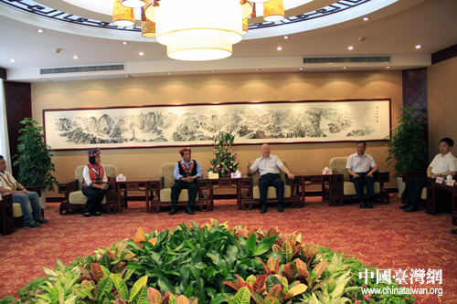 湖北省副省長田承忠25日下午在恩施會見了率臺灣少數民族代表前來參加恩施女兒會的中華海峽兩岸少數民族交流協會理事長簡東明一行。(中國臺灣網 楊麗 攝)