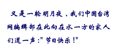 "月白風清兩岸親人同望月,神州大地華夏兒女共祝福。"由于工作的原因,我常常能夠接觸到許多有關臺灣的.... | | |